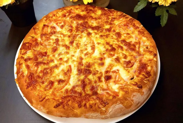Αν θέλετε να απολαύσετε μια πίτσα που θα εντυπωσιάσει, τότε αυτή η πίτσα XL με άφρατη ζύμη και στεφάνι γεμιστό με τυρί είναι η ιδανική επιλογή. Η αφράτη, σπιτική ζύμη με μυρωδικά αγκαλιάζει λιωμένα τυριά στο στεφάνι, ενώ η γέμιση συνδυάζει μπέικον, ζαμπόν, μανιτάρια και ντομάτα. Το αποτέλεσμα; Μια πλούσια, χορταστική πίτσα που θα γίνει η αγαπημένη σας επιλογή για ...